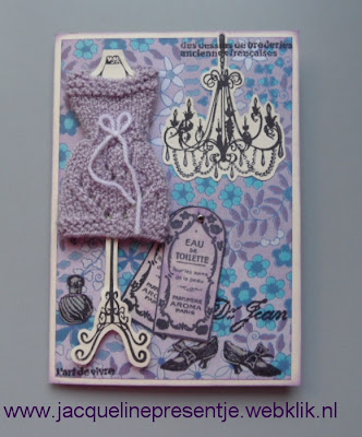 wat een leuk kaartje heb je gemaakt Jacqueline en dat gebreide jurkje is wel heel erg leuk verzonnen! wat een lieve creatieve moeder heb jij, geweldig!